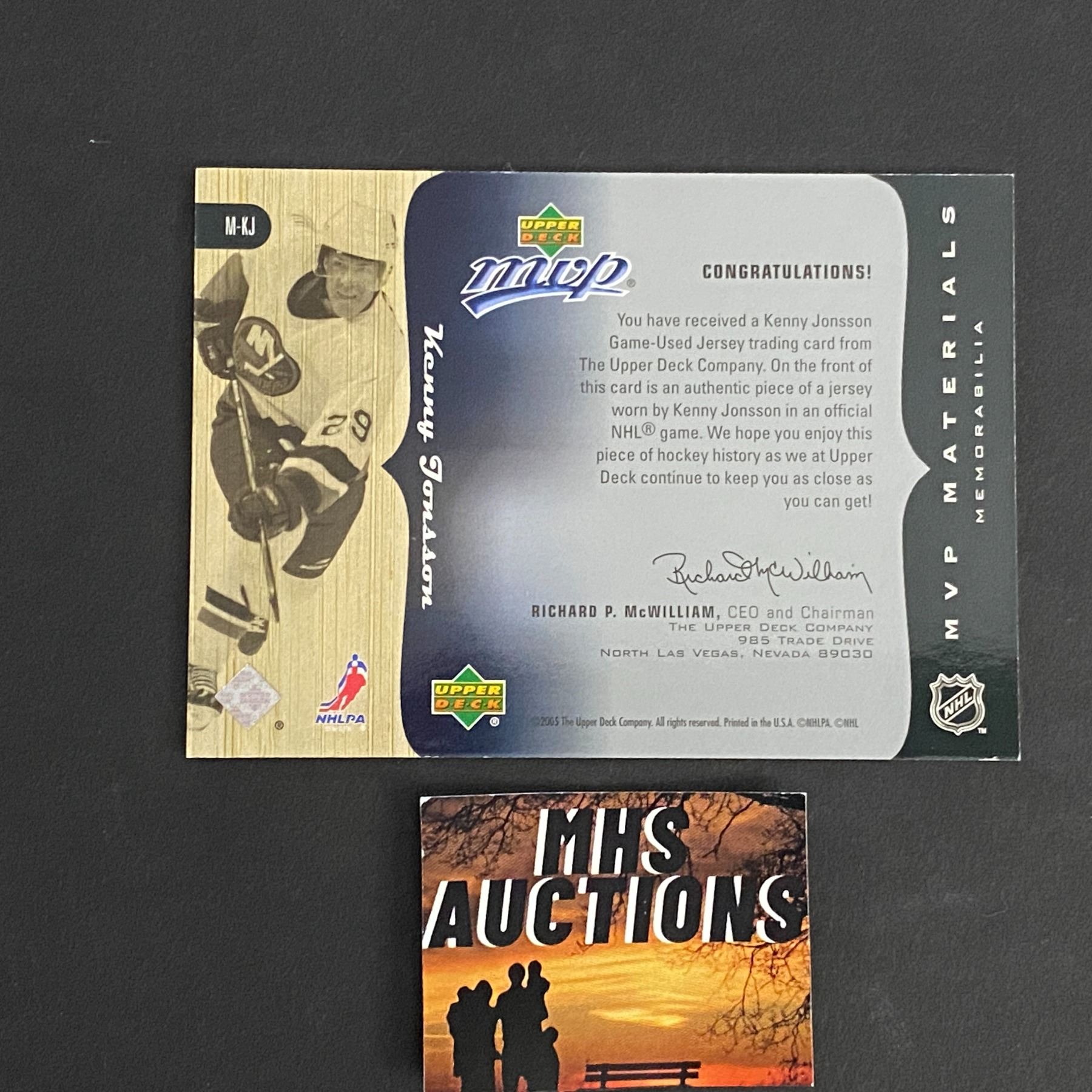 KENNY JONSSON 2005 U.D MVP HOCKEY JERSEY CARD