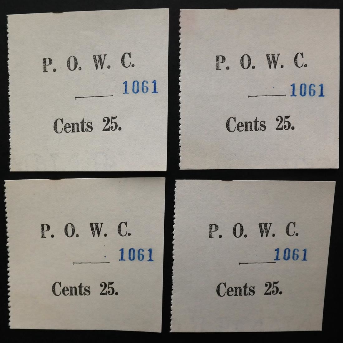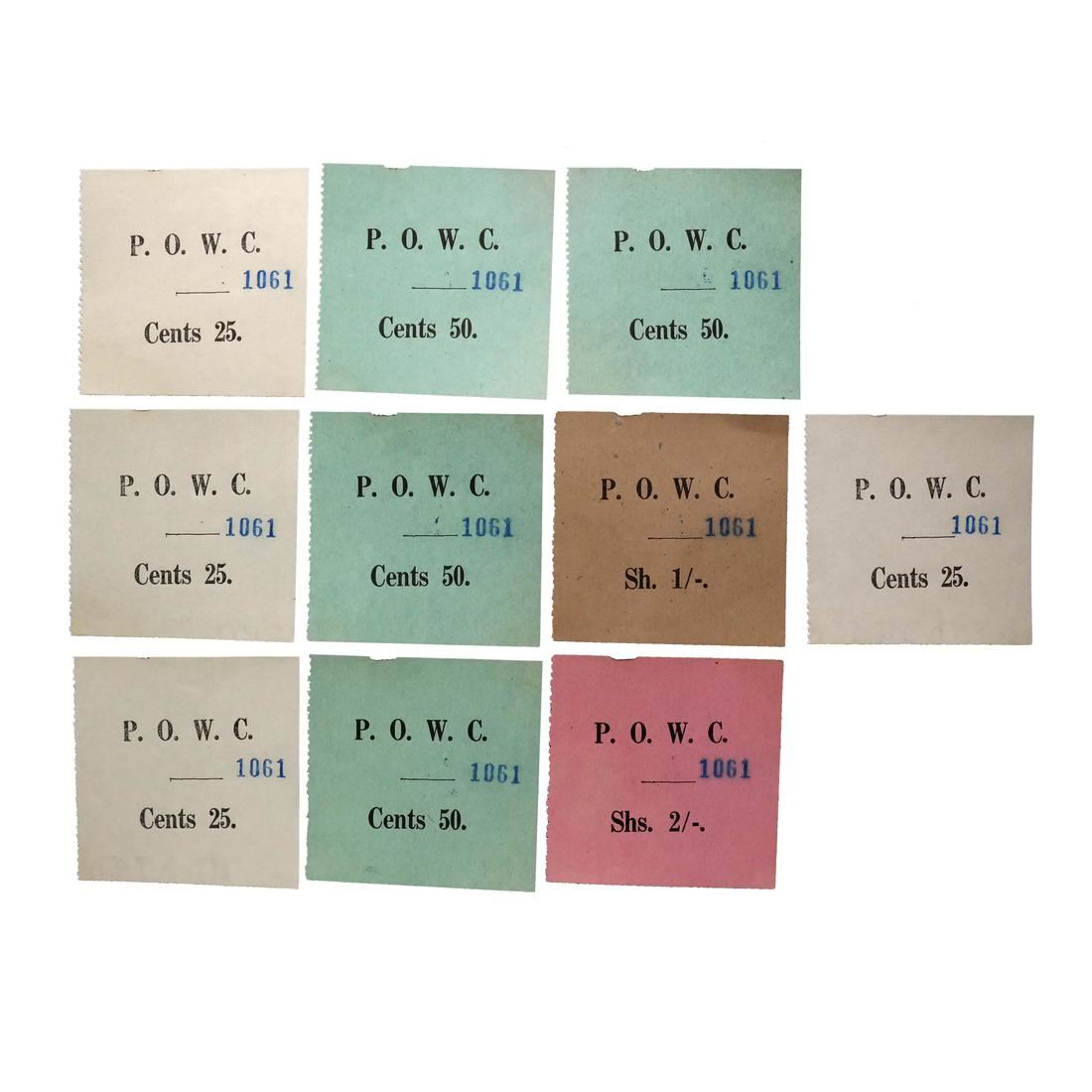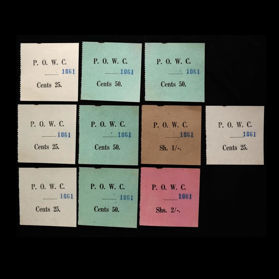 All numbered 1061 and most likely issued as a set or booklet, includes four 25c (partial papermakers watermarks), four 50c, one 1/- and one 2/-, each measure approx 58 by 55mm, sound and VF.