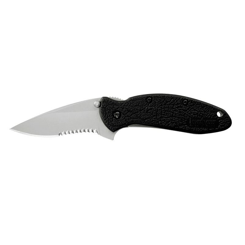 KERSHAW SERRATED BLACK SCALLION BLADE LENGTH: 2.25" CLO **|**|** KERSHAW SERRATED BLACK SCALLION BLADE LENGTH: 2.25" CLOSED LENGTH: 3.5"