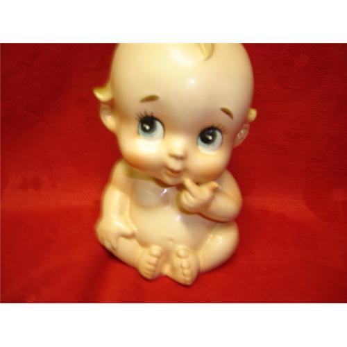 THIS KEWPIE IS PLANTER WHICH IS VERY DIFFERENT AND A HARD TO FIND. #3631. CUTE AND IS 7 INCHES TALL AND 4 INCHES WIDE. THIS KEWPIE IS A THINKER ONE TOO!