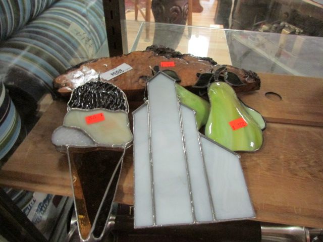 KEY CHAIN HOLDER & LEADED GLASS FRUIT - 6 PIECES
