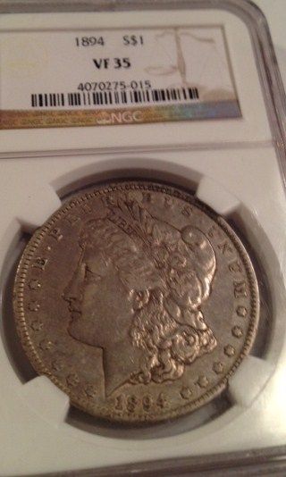 KEY DATE 1894 MORGAN SILVER DOLLAR, NGC VF-35, ONLY 110,000 MINTED