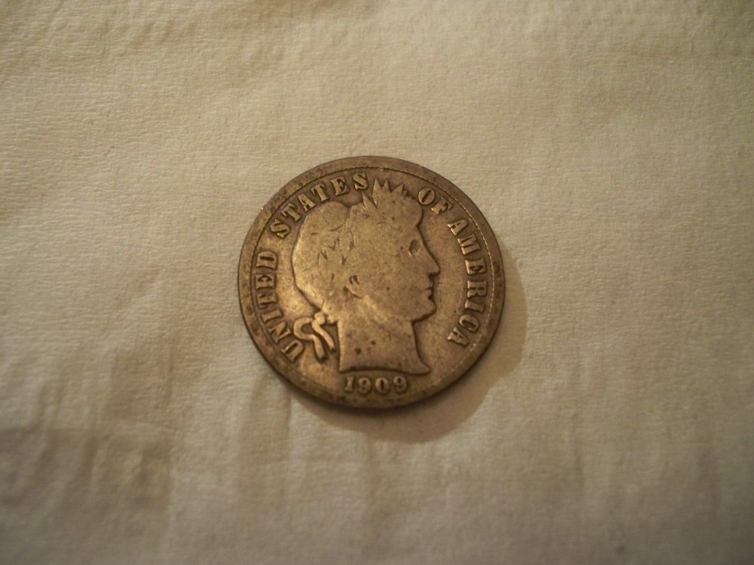 1909-D Silver Barber Dime. Its either VG or F12