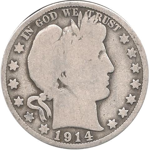 KEY DATE 1914 SILVER BARBER HALF DOLLAR-CIRC