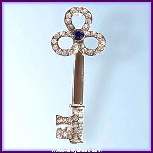 KEY PIN BROOCH 24K GOLD SWAROVSKI CRYSTAL JEWELRY<p>Height: .5 Inch