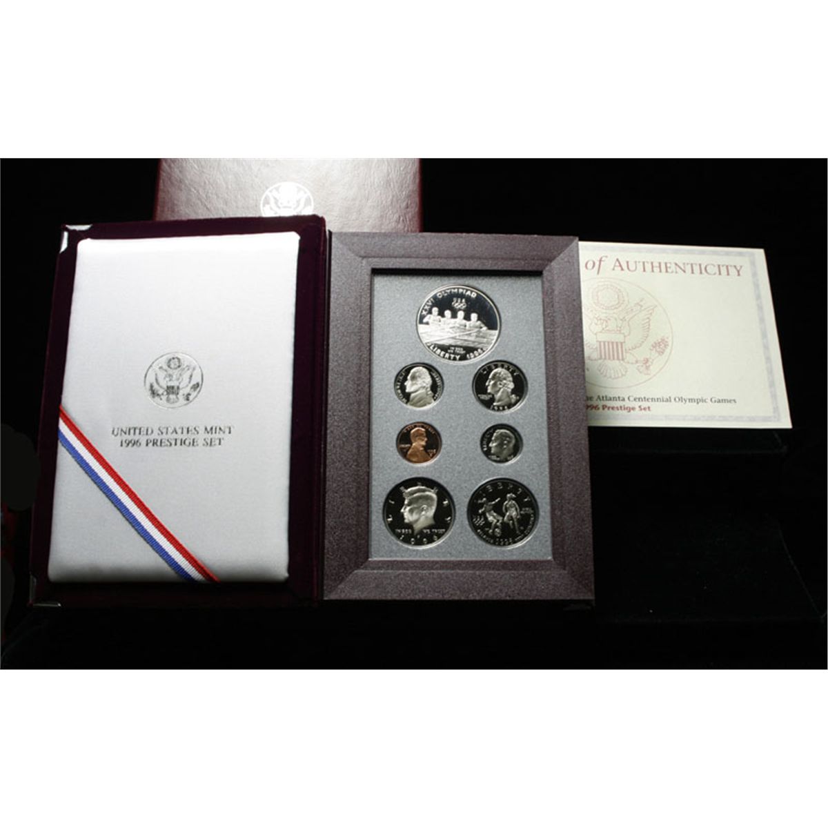 Contains the 1996 US Olympic Atlanta Centennial Games 90% silver US Silver Dollar & the 1996 US Olympic Atlanta Centennial Games Half Dollar plus the Traditional 5 pieces 1996 Proof Set. KEY SET TO THE SERIES!!!! Hard to find!!! Estimated Value $400