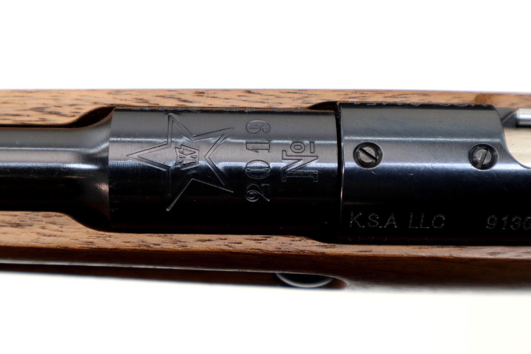 Main Description: Post front sight with hood and ramp, adjustable u notched rear sight, blued finish, round receiver drilled and tapped with plug screws installed, silver bolt with straight handle. Two piece full military wood stocks, finger grooved forearm, straight grip, smooth steel butt plate, sling slots, two barrel bands.