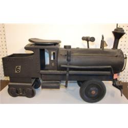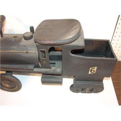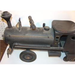 KEYSTONE CHILD'S RIDING LOCOMOTIVE TOY. Overpainted with black paint. 25.5" L