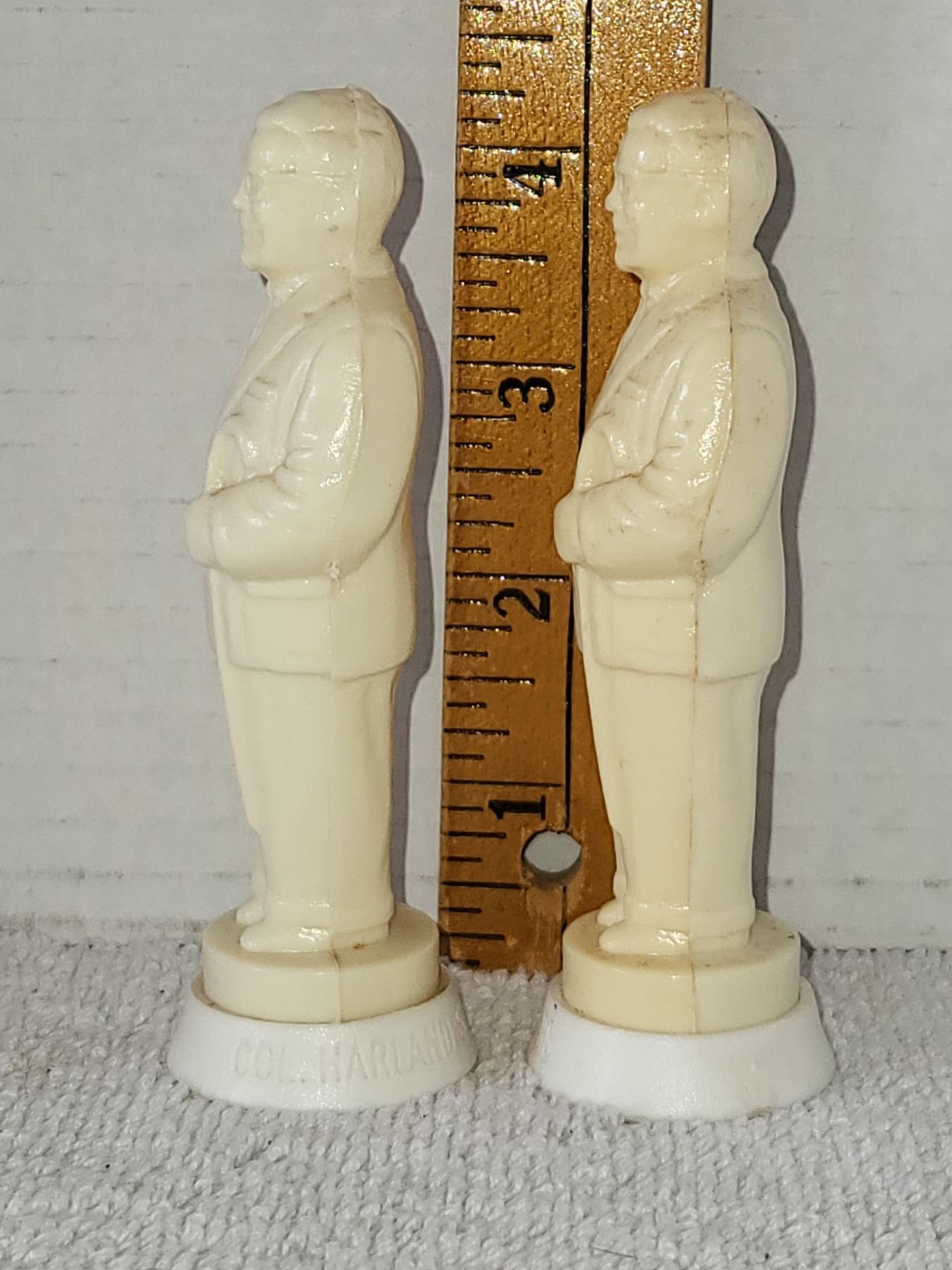KFC COL HARLANDS SANDERS SALT AND PEPPER SHAKERS. THE COLONEL HIMSELF! MEAURES 4.25" X 1.25"
