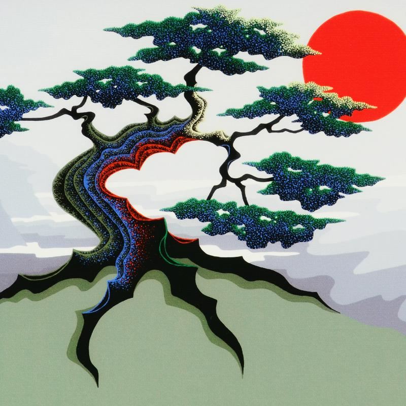 Larissa Holt, a student of distinguished artist Eyvind Earle(1916-2000), uses bold colors and breathtaking scenery to create images of Nature in her own unique style. "KI" is a limited edition giclee on stretched canvas by Holt, numbered and bearing Holt's authorized signature. This piece comes gallery wrapped with a black border, and is ready to hang. Includes Certificate of Authenticity! Measures approx. 12.5" x 10" x 1.5" (image).