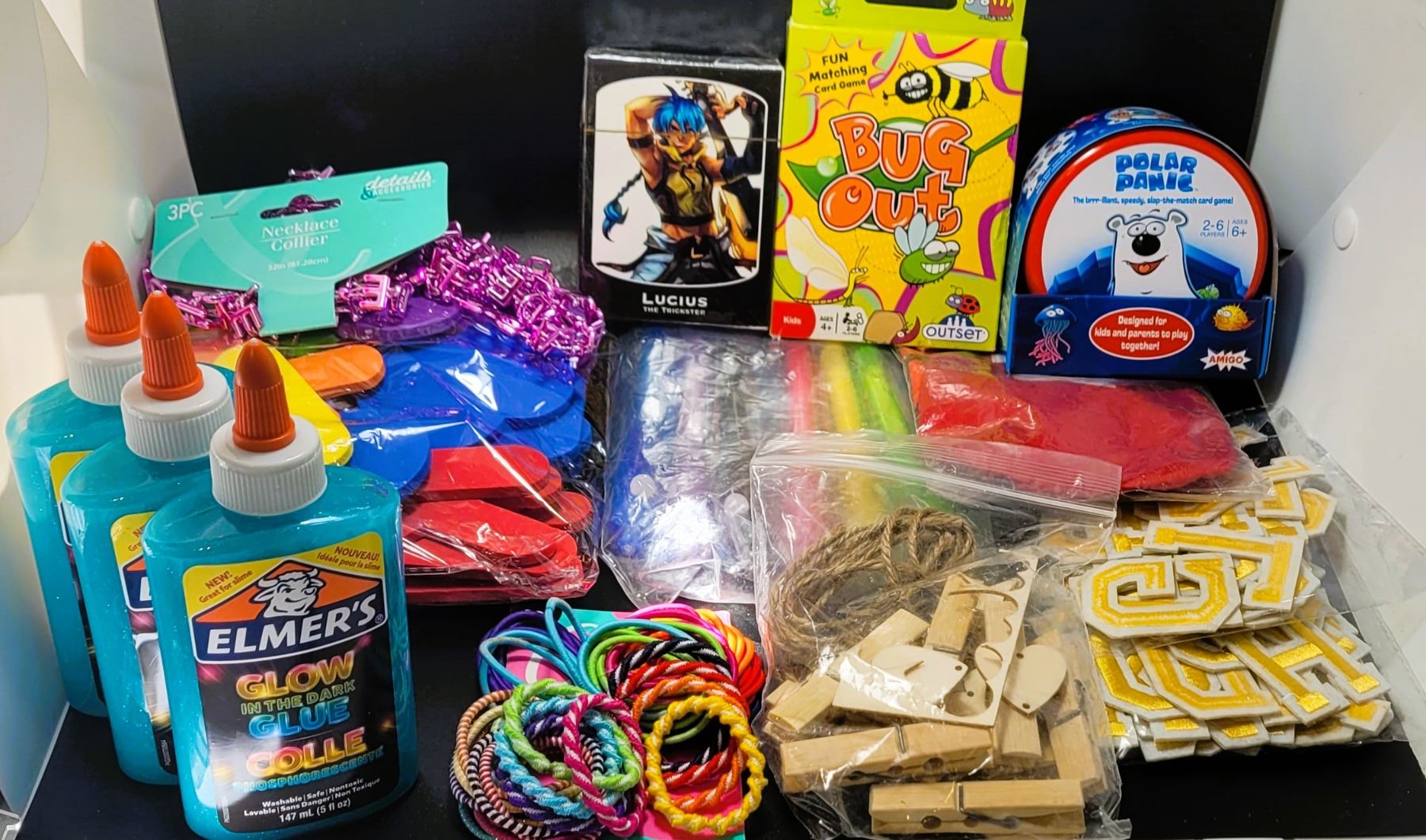 ARTS AND CRAFTS SUPPLIES INCLUDING GLOW IN THE DARK GLUE. TOYS