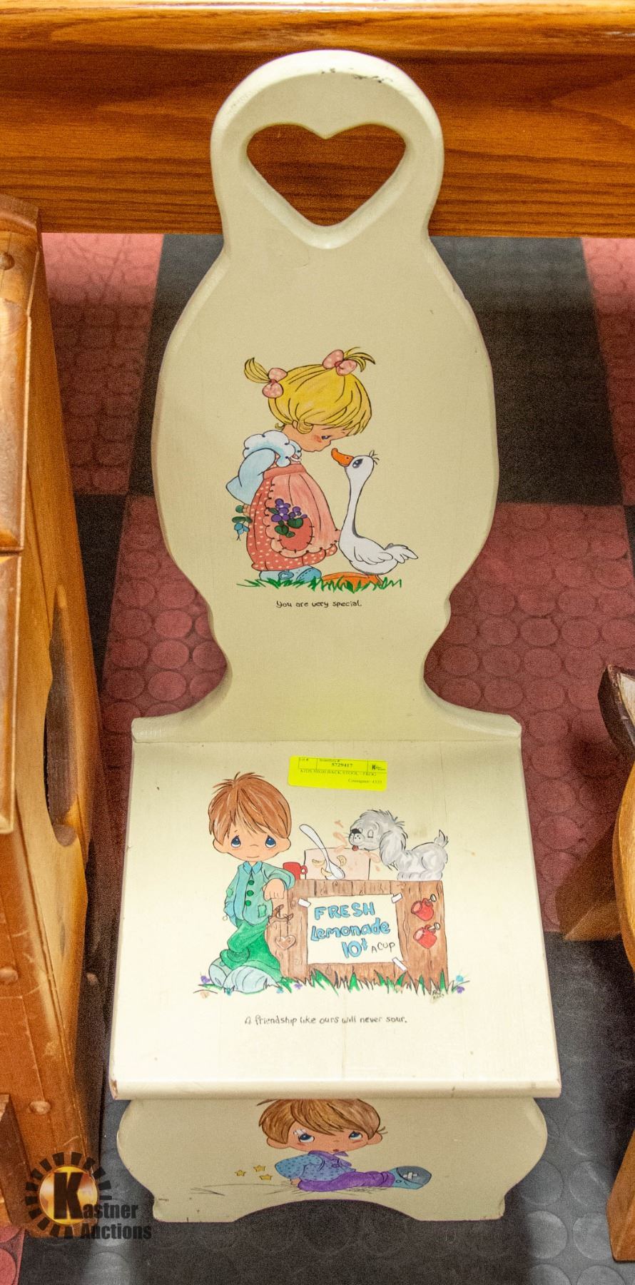 PAINTED KIDS TOOTHBRUSHING HIGH BACK STOOL WITH FROG PAINTING **ALL ITEMS MUST BE REMOVED BY 5PM SATURDAY, DECEMBER 2ND 2023. ALL REMAINING ITEMS WILL BE SUBJECT TO A $6.00 PER DAY STORAGE CHARGE. ANY ITEMS REMAINING AFTER MONDAY, DECEMBER 18TH, 2023 WILL BE CONSIDERED FORFEITED. NO REFUNDS WILL BE ISSUED FOR FORFEITED ITEMS. TO SCHEDULE A PICK UP APPOINTMENT CLICK HERE