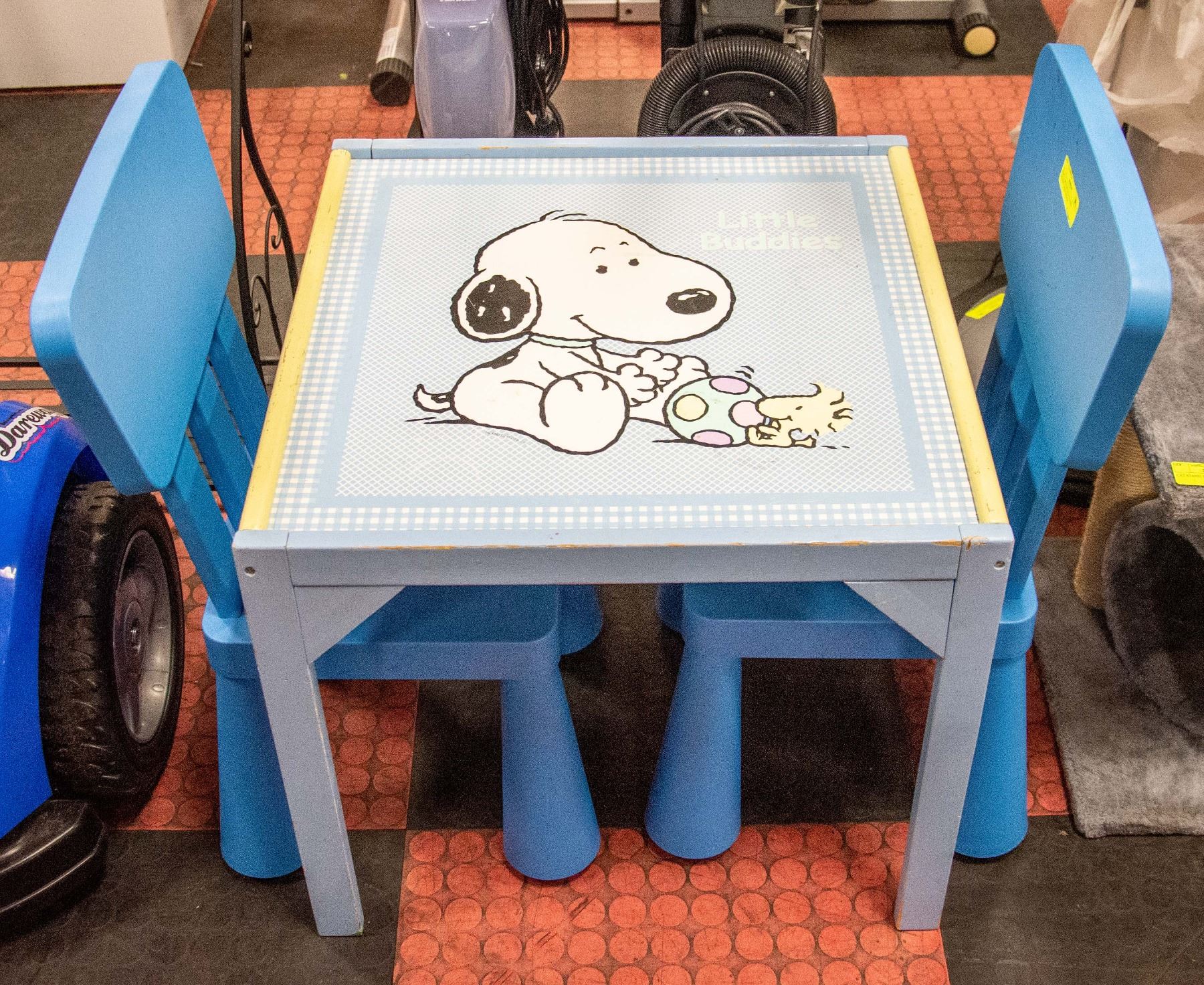 KIDS TABLE WITH 2 CHAIRS, SNOOPY DOG DESIGN