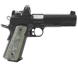 This semi-automatic Kimber 1911 KHX Custom pistol includes an installed 3.25 MOA Trijicon RMR06 Type 2 co-witnessed with suppressor height white dot sights. This 1911 pistol will be at home on the range and as your next carry pistol.