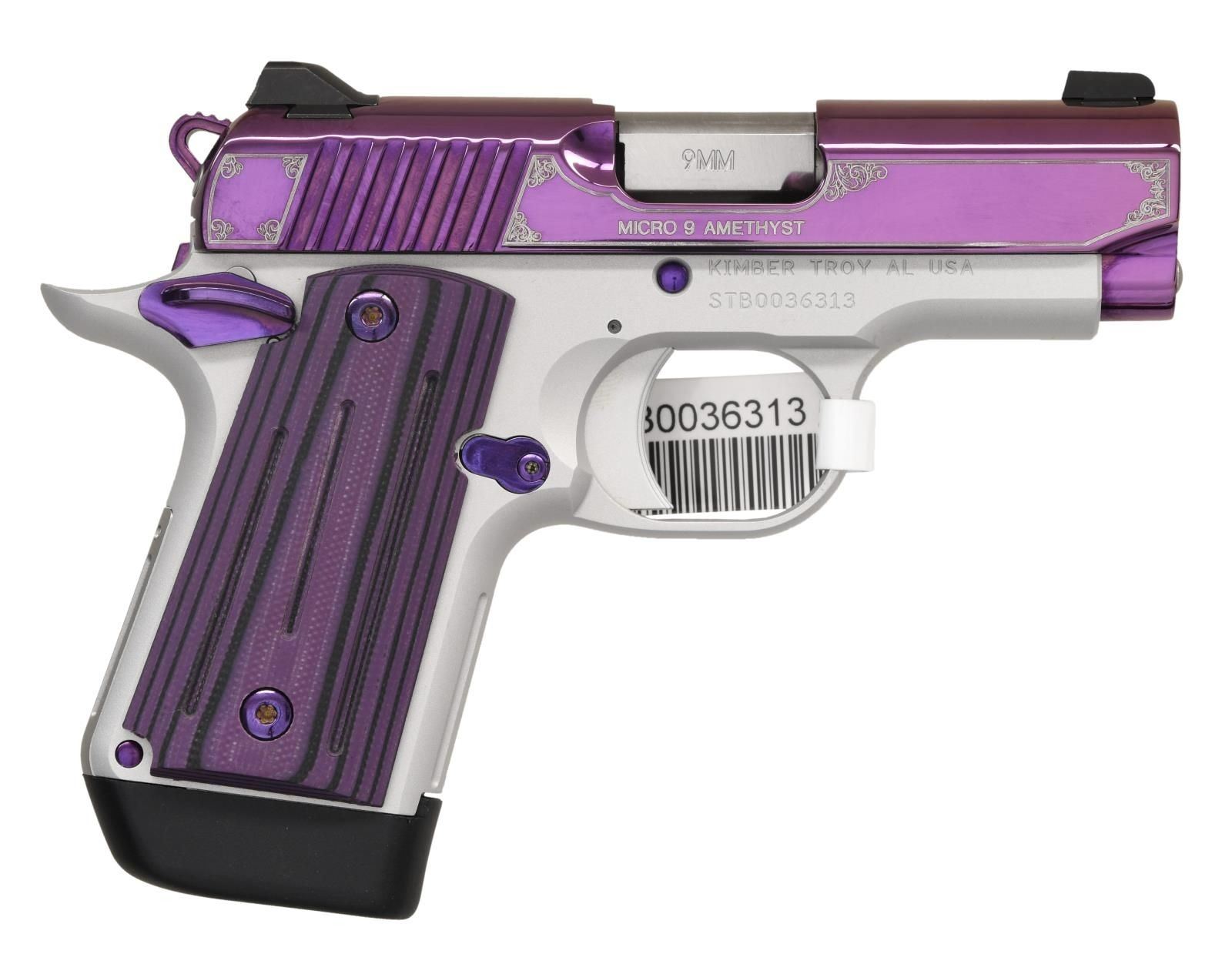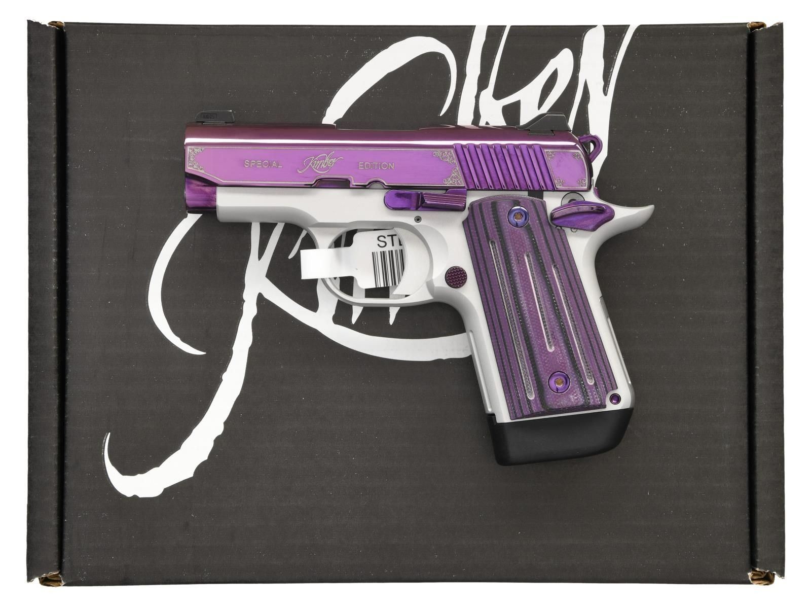 Cal. 9mm. S# STB0036313. Bbl. 3". Three dot night sights. Purple PVD coated slide w/ rear serrations & floral accents. Ambi safety. Silver finished aluminum frame. Factory hang tag present on trigger guard. Purple & black G10 grips. MAGS: 1-7 rd. factory w/ black baseplate. UNATTACHED ACCESSORIES: matching numbered factory box w/ softcase, manual, paperwork & cable lock. CONDITION: all aspects near excellent. PROVENANCE: The Collection of Gun Sport Ltd owned by Jon R. Thomas. PROVENANCE: The Collection of Gun Sport Ltd owned by Jon R. Thomas. (23-2811/MJC). MODERN. $800-1200.