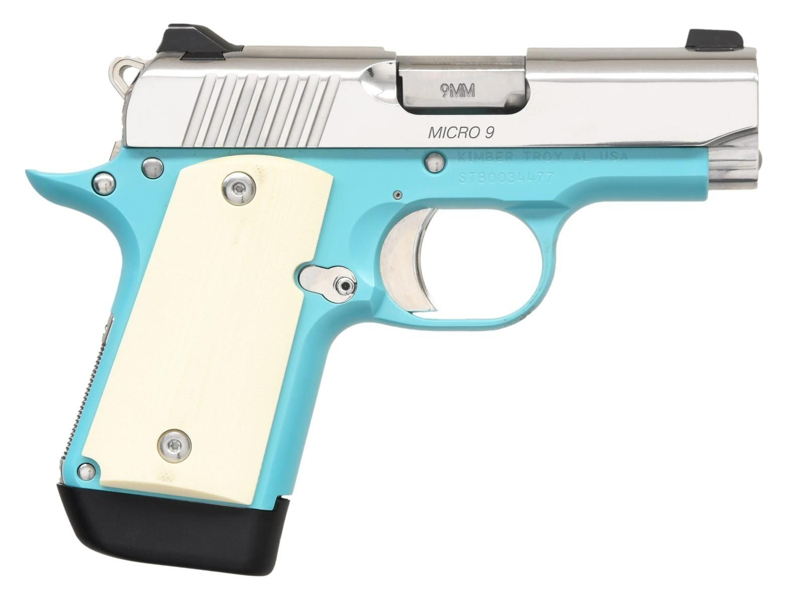 Cal. 9mm Luger. S# STB0034477. Bbl. 3". Three dot night sights. Mirror polished stainless slide. Aluminum Bel Air blue finished frame. Ivory colored G10 grips. MAGS: 1-7 rd. factory w/ black baseplate. UNATTACHED ACCESSORIES: w/box. CONDITION: all aspects near excellent. PROVENANCE: The Collection of Gun Sport Ltd owned by Jon R. Thomas. (23-4400/MJC). MODERN. $700-1000.