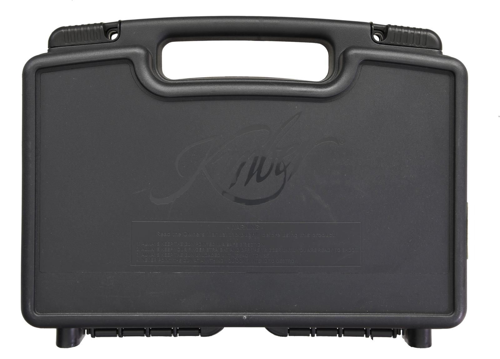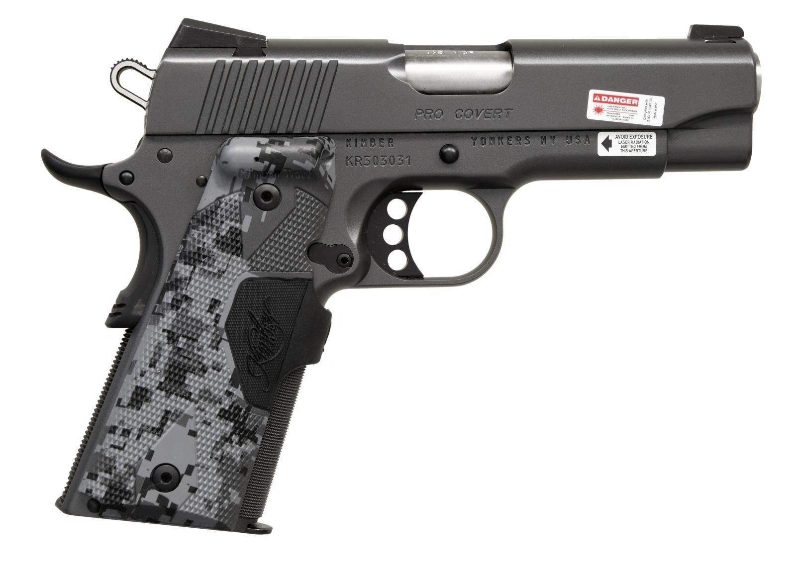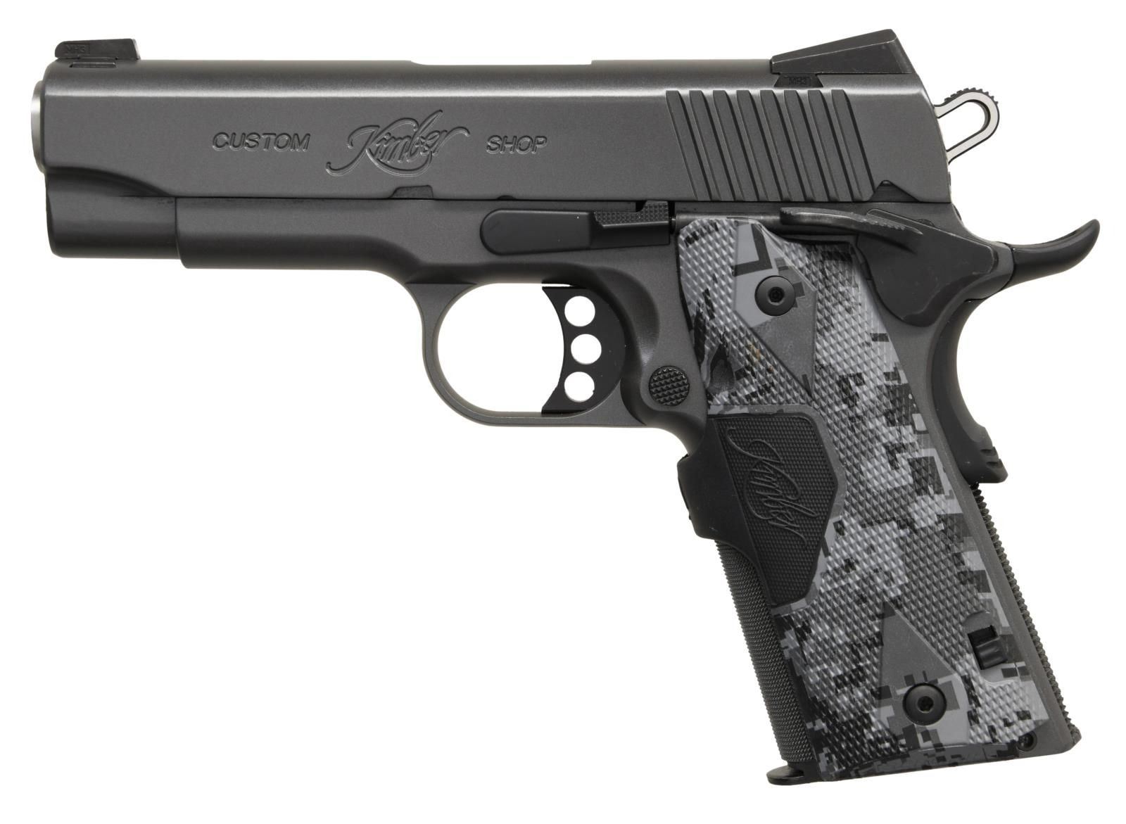 Cal. 45 ACP. S# KR303031. Bbl. 4". Three dot night sights. Slide has rear serrations. Extended right hand safety. Extended beavertail grip safety. Stippled front & backstraps. Matte gray finish. Crimson Trace grips that may need batteries or attention to work. Crimson trace laser stickers present on front of slide & frame. MAGS: 1-8 rd. factory blued. UNATTACHED ACCESSORIES: w/box. CONDITION: all aspects near excellent. PROVENANCE: The Collection of Gun Sport Ltd owned by Jon R. Thomas. (23-3862/MJC). MODERN. $800-1200.