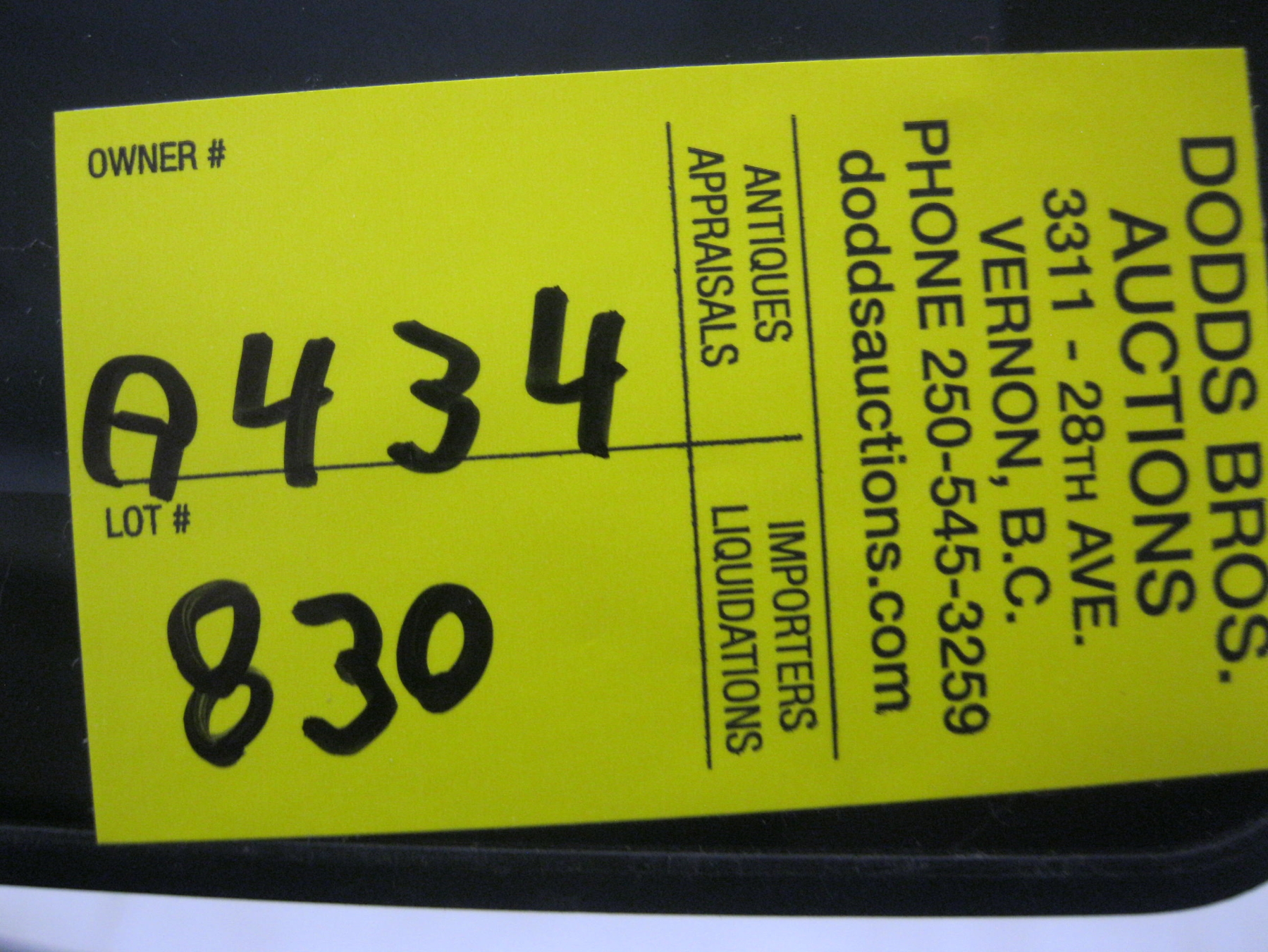 Attendance at the auction preview, or removal of purchased lots by purchaser/bidders and guests is done at their sole risk. Dodds Auction assumes no risk or liability, statutory, common law or otherwise whatsoever for the safety of those attending at the auction premises.
