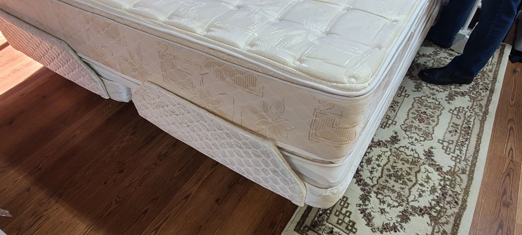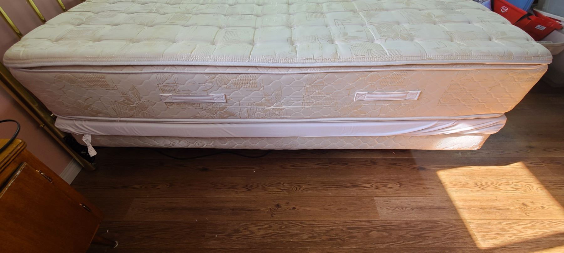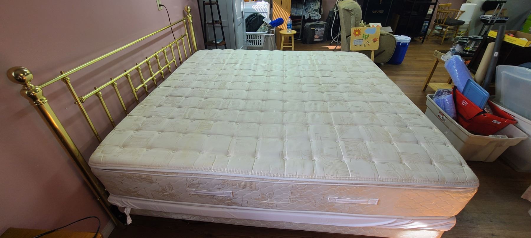KING BED FRAME, BOXSPRING COMES WITH MATTRESS. BED DOES NOT LIFT