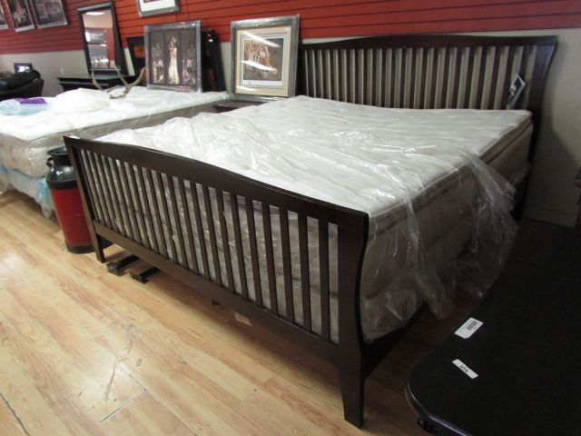 KING BED FRAME - SHAKER STYLE - DARK WALNUT STAIN - NEW