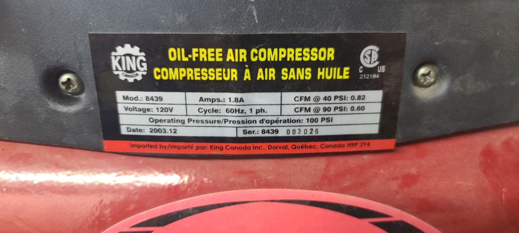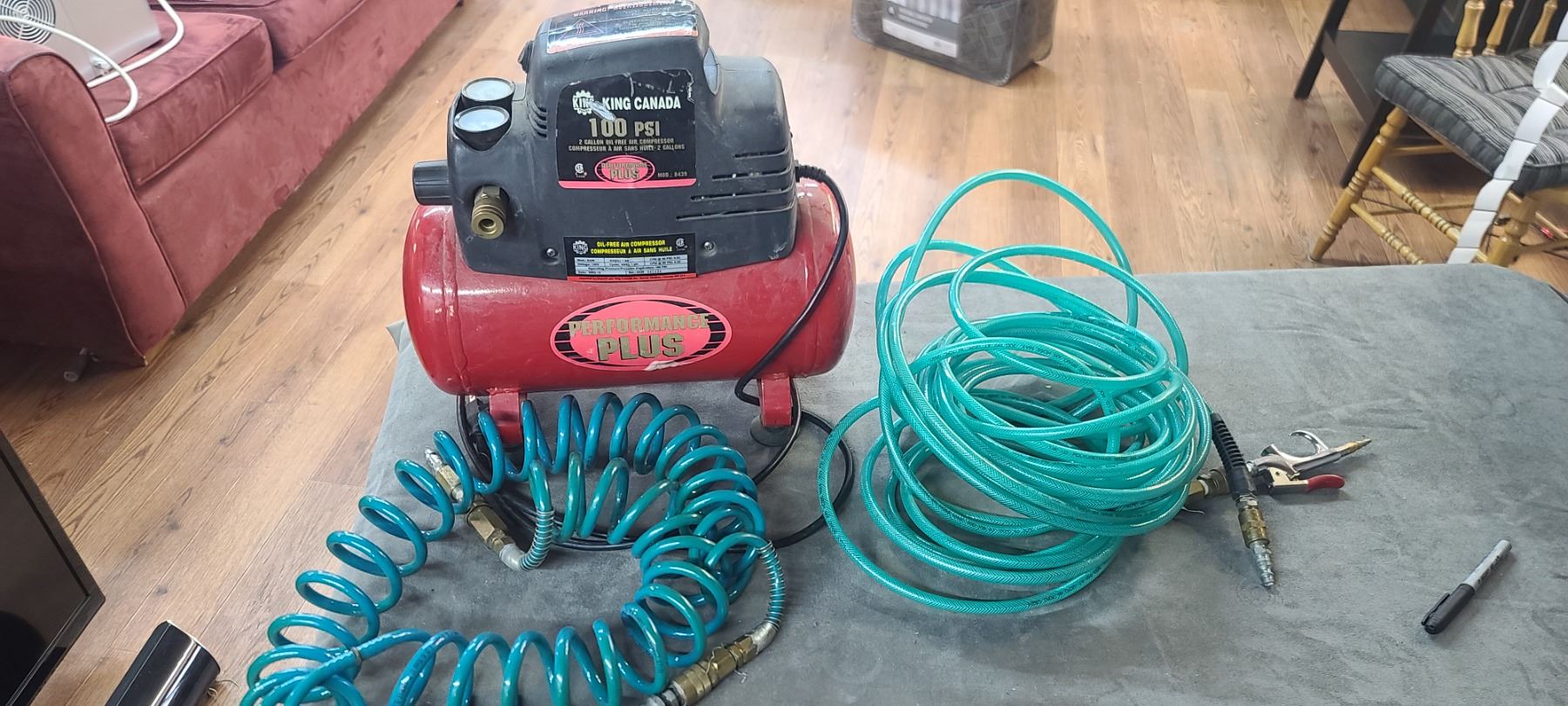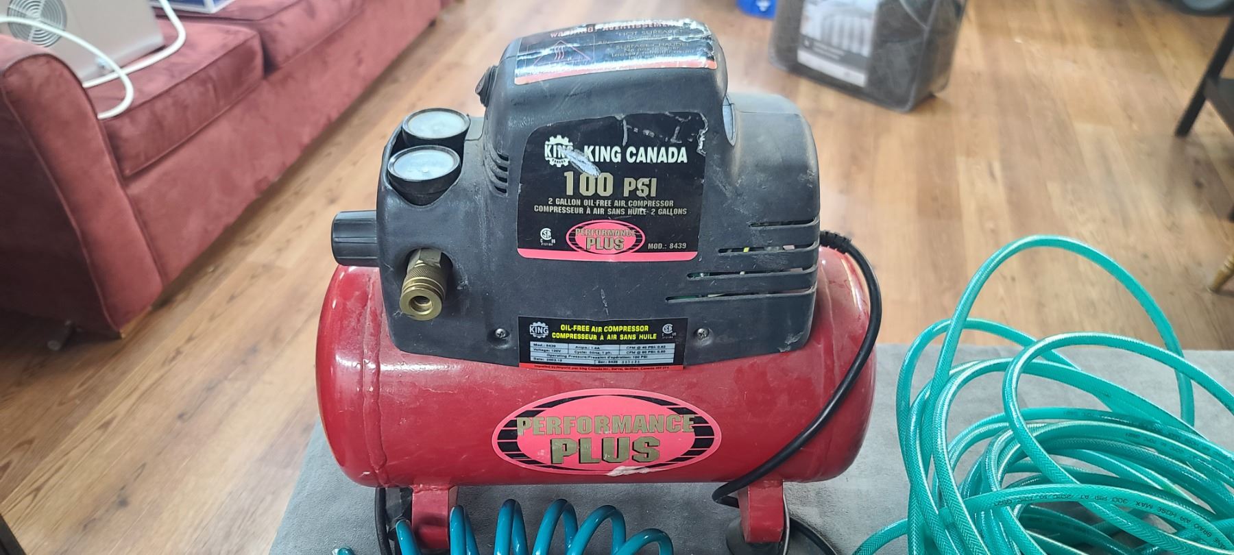 KING CANADA AIR COMPRESSOR (1000PSI) PLUS TWO HOSES AND TIPS