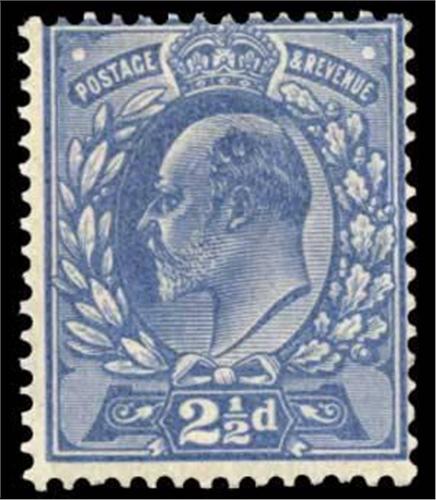 1902-10 2½d colour trial in pale blue, off-centre large part o.g. R.P.S. Cert (1974) cat £550+
