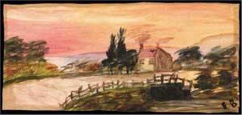 Hand-painted (water colours) postcard, untitled scene of house by a river with initials EB at lower right, addressed to Warrington and franked with two ½d adhesives tied by Stockport squared circles of Sp 1, small faults