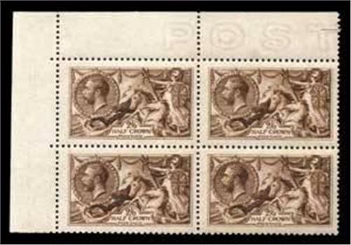 1915 De La Rue 2s 6d yellow-brown (SG 406) NW cnr marginal block of four, centred slightly to right good colour and u/m, cat £1800+