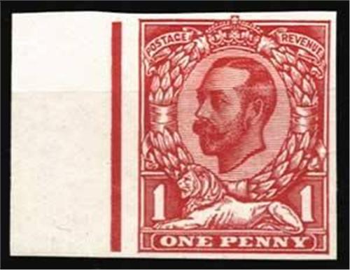 1911-12 1d die b carmine, marginal imperforate paper trial in carmine on thick, chalk surfaced paper without watermark