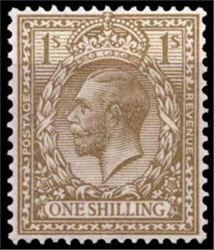 1912-24 1s bistre wmk inverted (SG 395a) large part o.g., cat £150