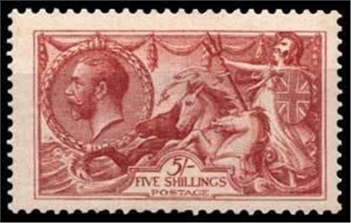 1913 Waterlow 5s rose-carmine (SG 401) a couple of shortish perfs at foot and light gum tones, o.g. cat £325