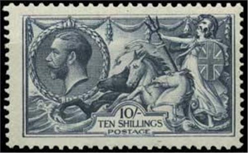 1918-19 10s Seahorse dull grey-blue (SG 417) off-centre with light gum toning, large part o.g. cat £350
