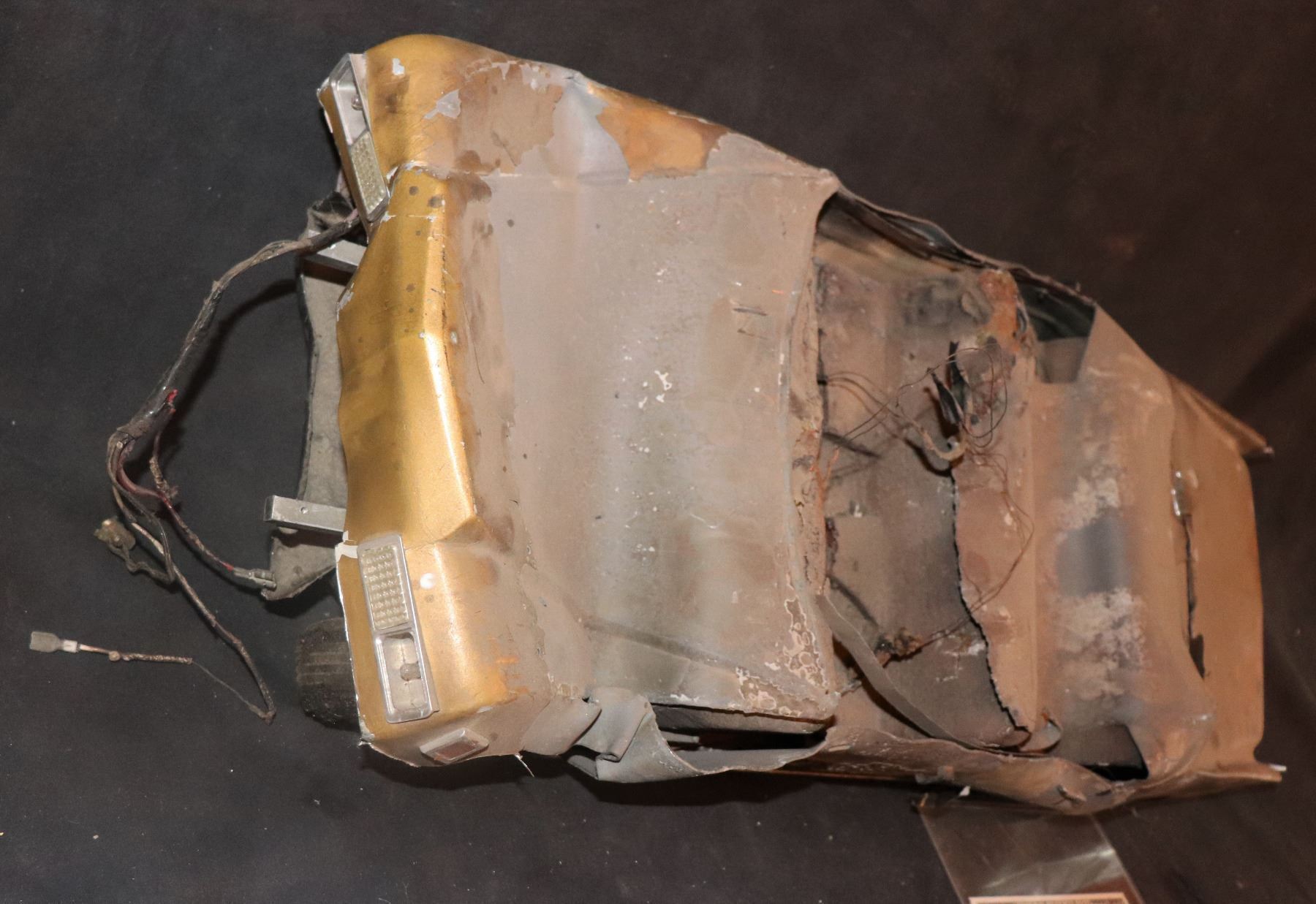 Made of sheet lead to crush on film, but shot may simply show it crushed and burning.