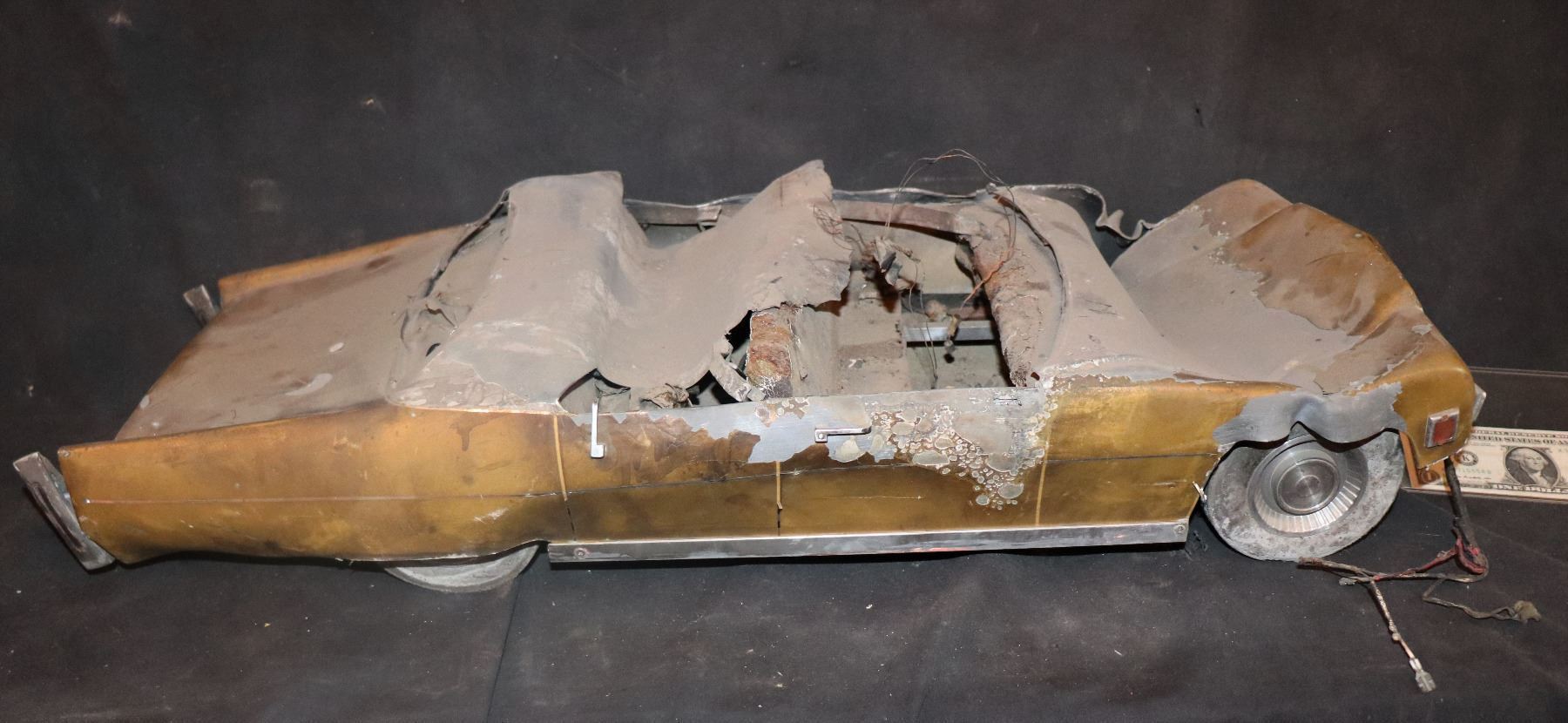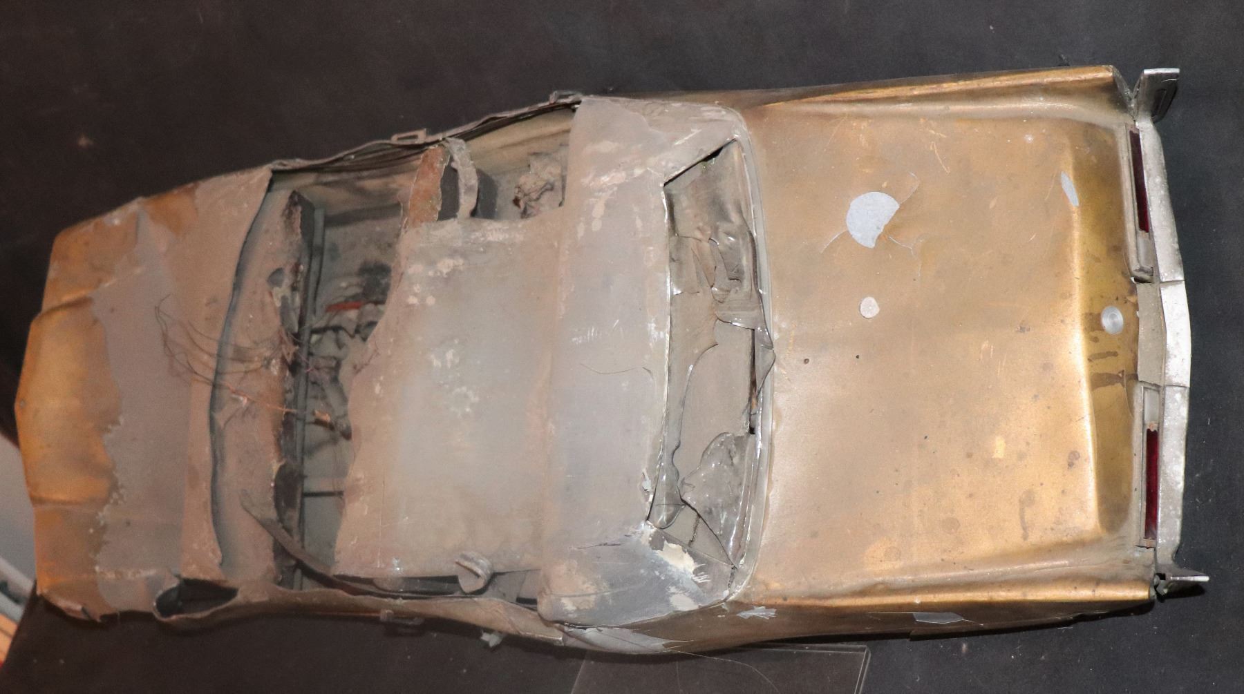KING KONG 1976 CRUSHED AND BURNED LARGE SCALE MINIATURE LEAD CADILLAC.