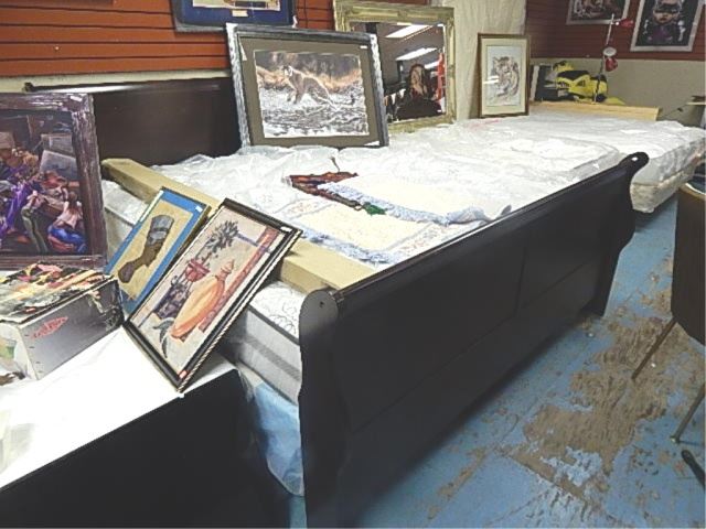 KING SLEIGH BED FRAME - NEW OUT OF THE BOX - AS-IS includes headboard, foot board and rails