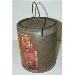 KING SYRUP HANDLED PAIL. King Syrup paper label shows signs of extreme wear. 6" H