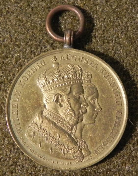 OFFERED HERE IS A KING WILHELM/QUEEN AUGUSTA OF PRUSSIA ORIGINAL"MEDAL WITH ROYAL MARKINGS ON REVERSE. IT IS 1 1/4"" IN DIAMETER-GILT."