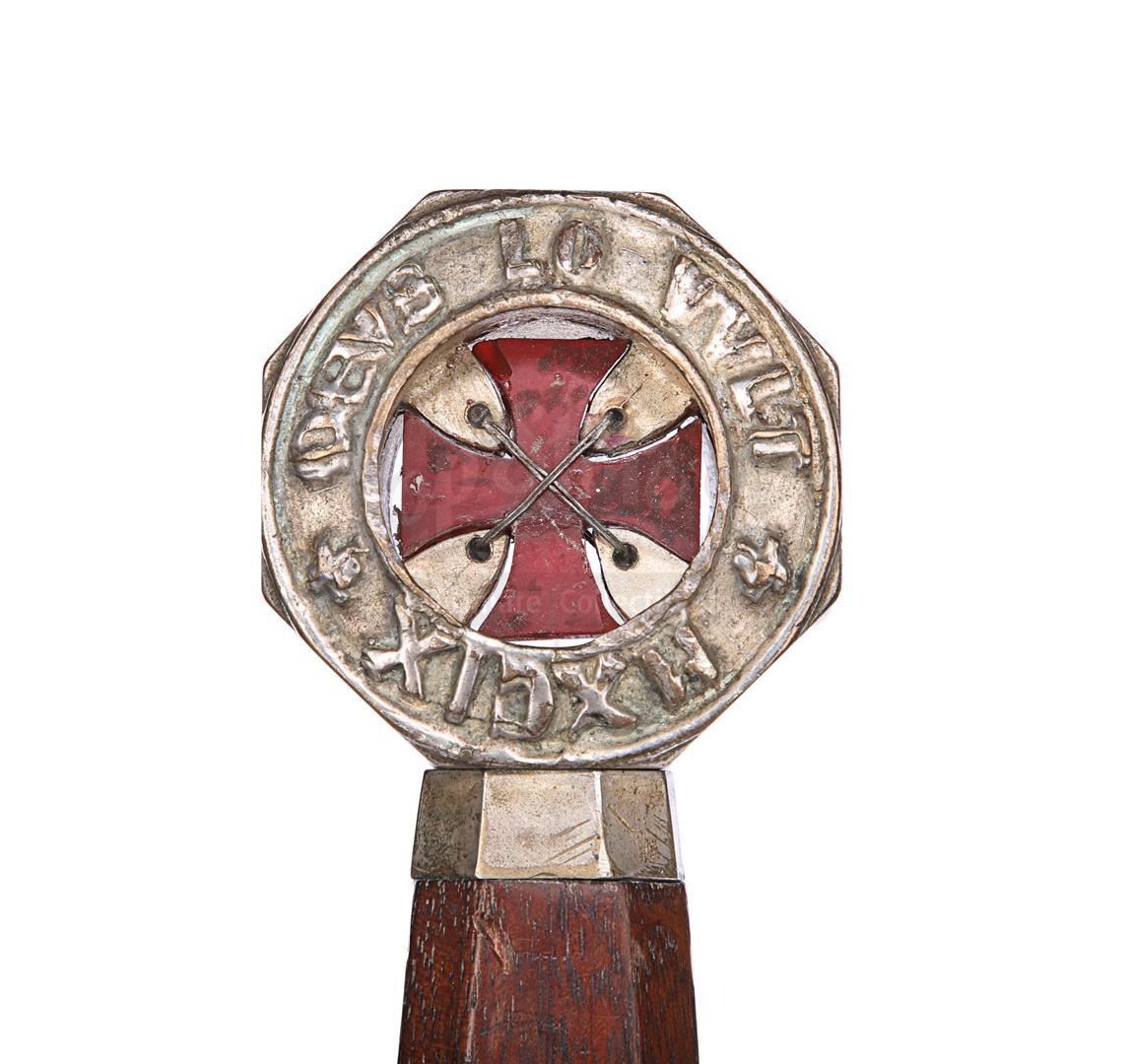 Balian de Ibelin's (Orlando Bloom) hero sword from Ridley Scott's historical epic Kingdom of Heaven. The sword initially belonged to Balian's father, Godfrey (Liam Neeson), who bequeathed it to his son upon his death. Balian then used the sword for the remainder of the film, while defending Jerusalem from Saladin's (Ghassan Massoud) army.