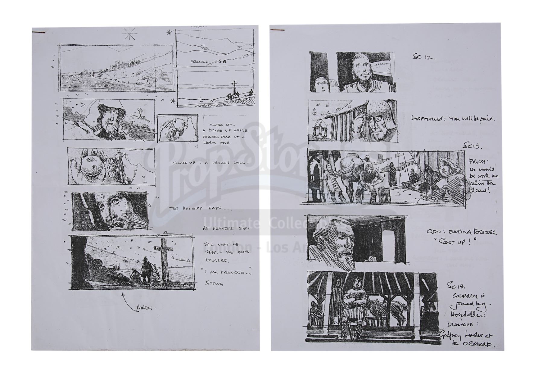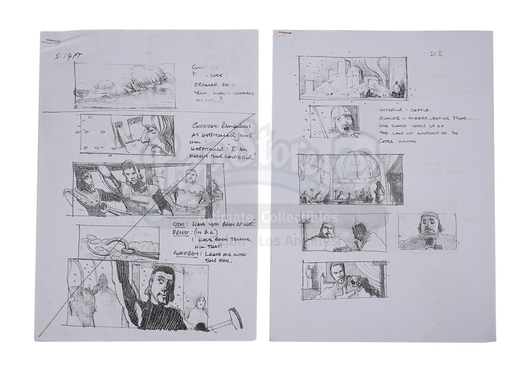 A clapperboard, shooting script, storyboards, call sheets and memos from the production of Ridley Scott's historical epic Kingdom of Heaven.