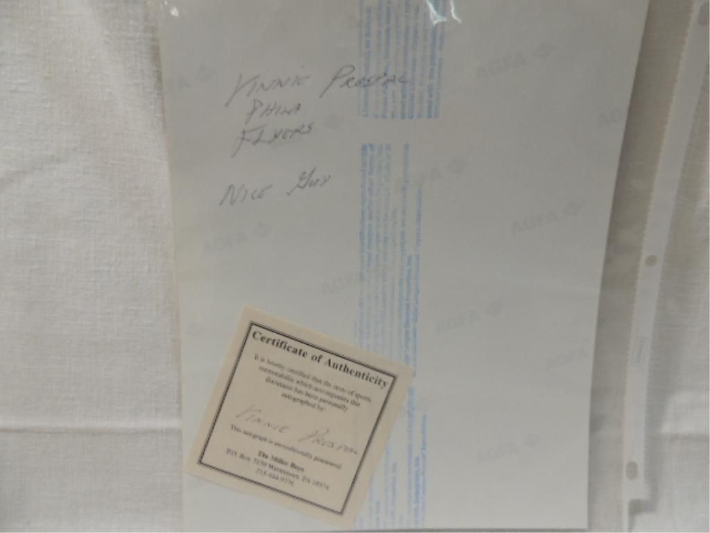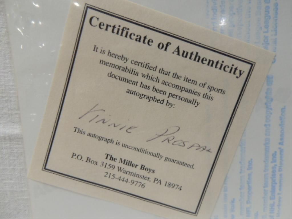 KINNIE PROSPAL SIGNATURE AUTOGRAPH ON HOCKEY PHOTO. INLCUDES COA FROM THE MILLER BOYS. AS SHOWN. VIEW PICTURE FOR DETAIL. PLEASE BE ADVISED, AND INFORMED REGARDING SIGNATURES OR AUTOGRAPHS THAT WE SELL AT AUCTION: WE ARE NOT AUTHENTICATORS, AND WE DO NOT AUTHENTICATE, OR VALIDATE ANY AUTOGRAPHS OR SIGNATURES THAT WE OFFER AT AUCTION. SOME AUTOGRAPHS OR SIGNATURES MAY COME WITH AN AUTHENTICATION FROM ANY ONE OF LITERALLY HUNDREDS OF AUTHENTICATORS ACROSS THE COUNTRY, AND AROUND THE WORLD. WE DO NOT ENDORSE ANY AUTHENTICATOR, NOR DO WE GUARANTEE THAT ANY AUTOGRAPH OR SIGNATURE IS AUTHENTIC, OR THAT IT WILL PASS AUTHENTICATION BY ANY AUTHENTICATOR. ALL AUTOGRAPHS OR SIGNATURES ARE SOLD