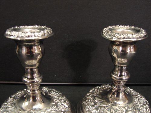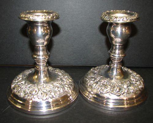 PAIR OF KIRK STIEFF CANDLEHOLDERS. Marked on bottom “Kirk Stieff Silverplate/1725”. 4.5” H