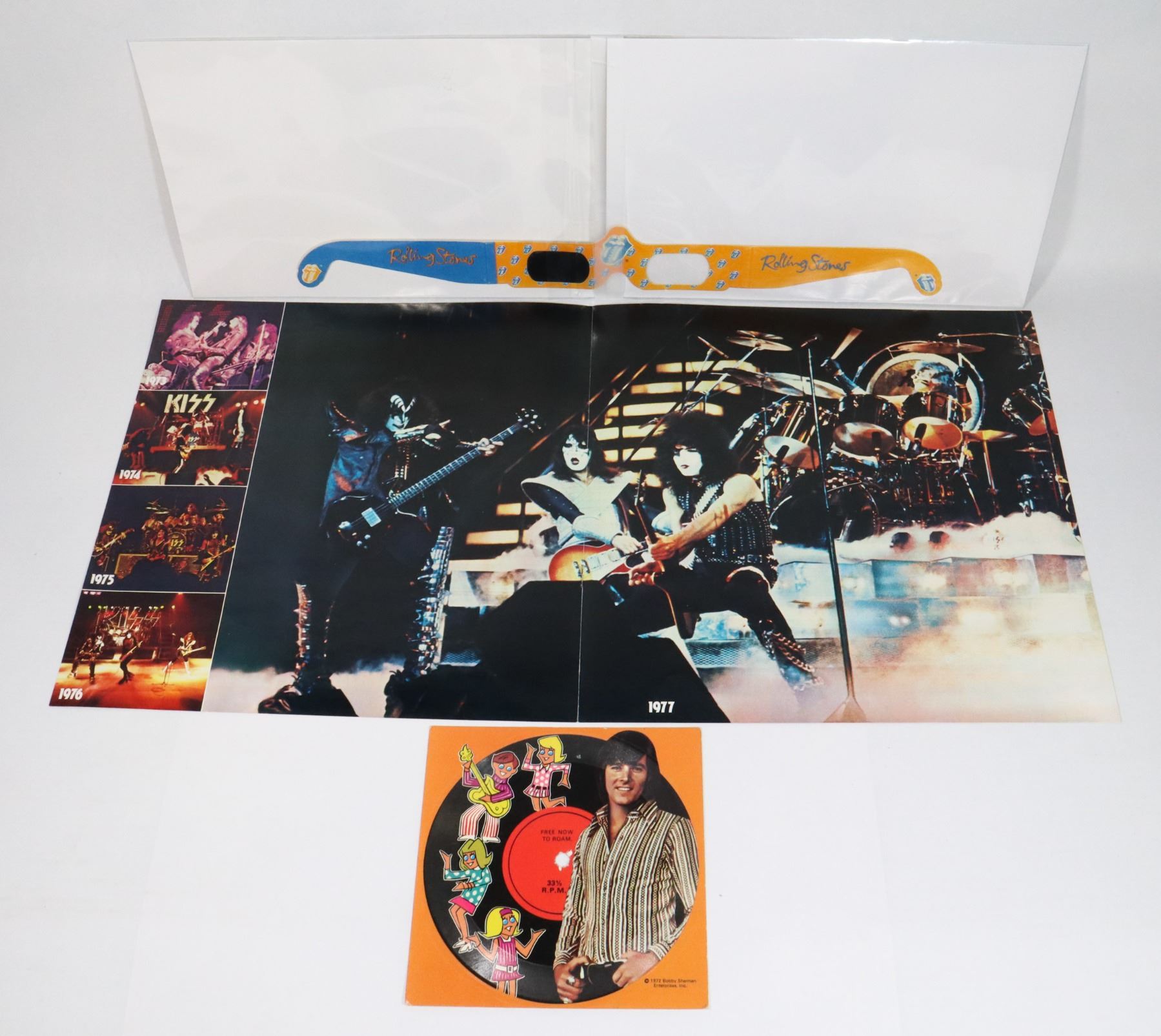 TO ROAM BOBBY SHERMAN POST CEREAL VINYL AND ROLLING STONES 1990 3D 3-D GLASSES UNUSED FROM STONES 3D CONCERT 1990 UNUSED CONDITION