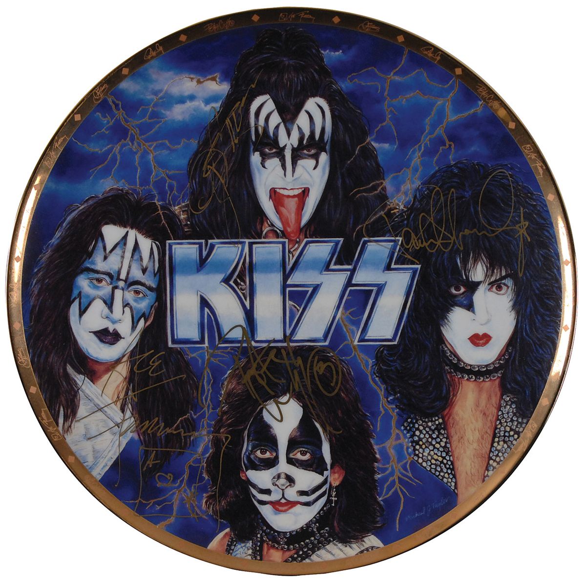 Colorful limited edition 10.25-inch Gartlan artist proof plate, limited issue of 250, signed in gold ink by Gene Simmons, Paul Stanley, Ace Frehley, and Peter Criss. In fine condition.
