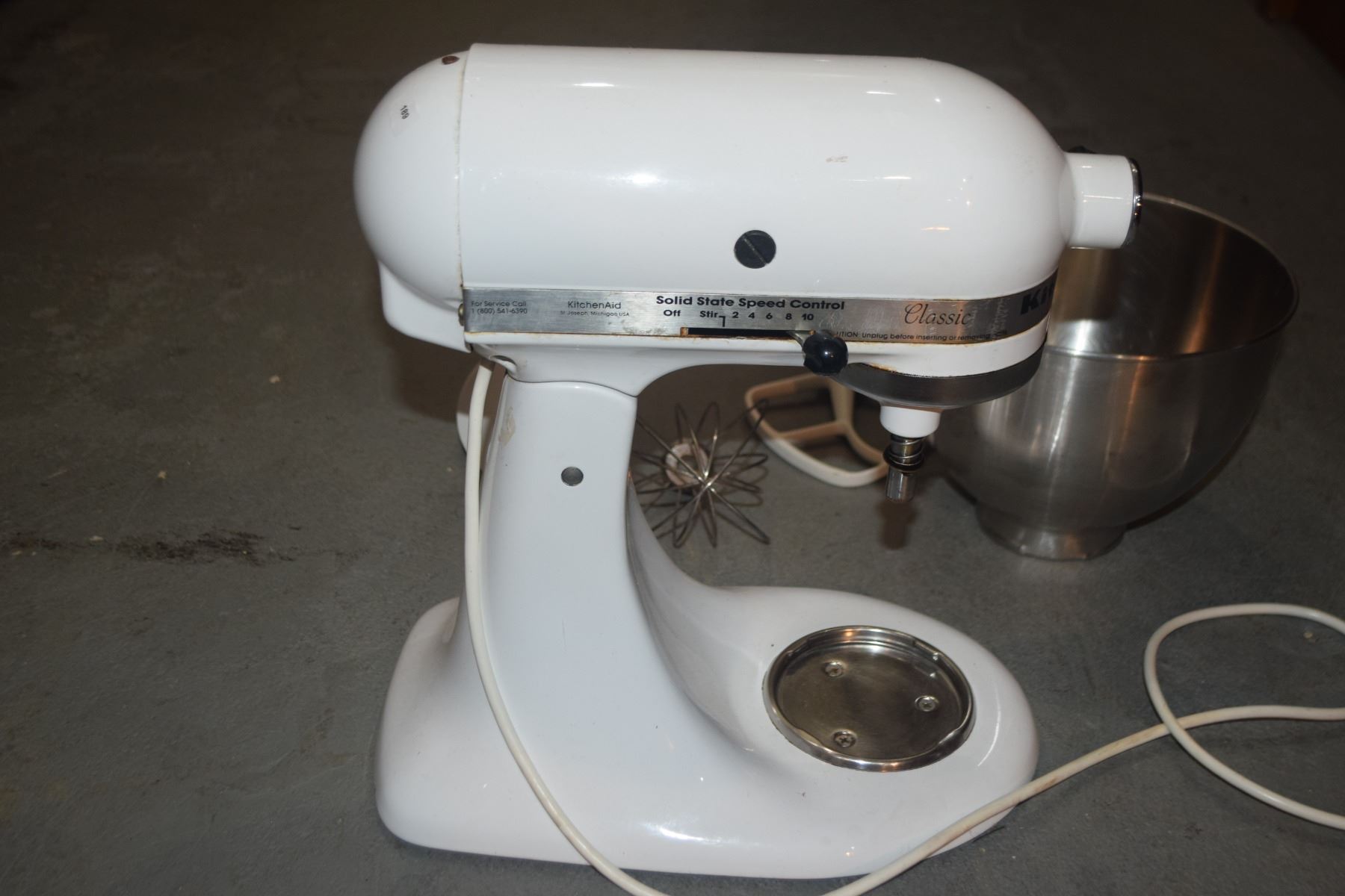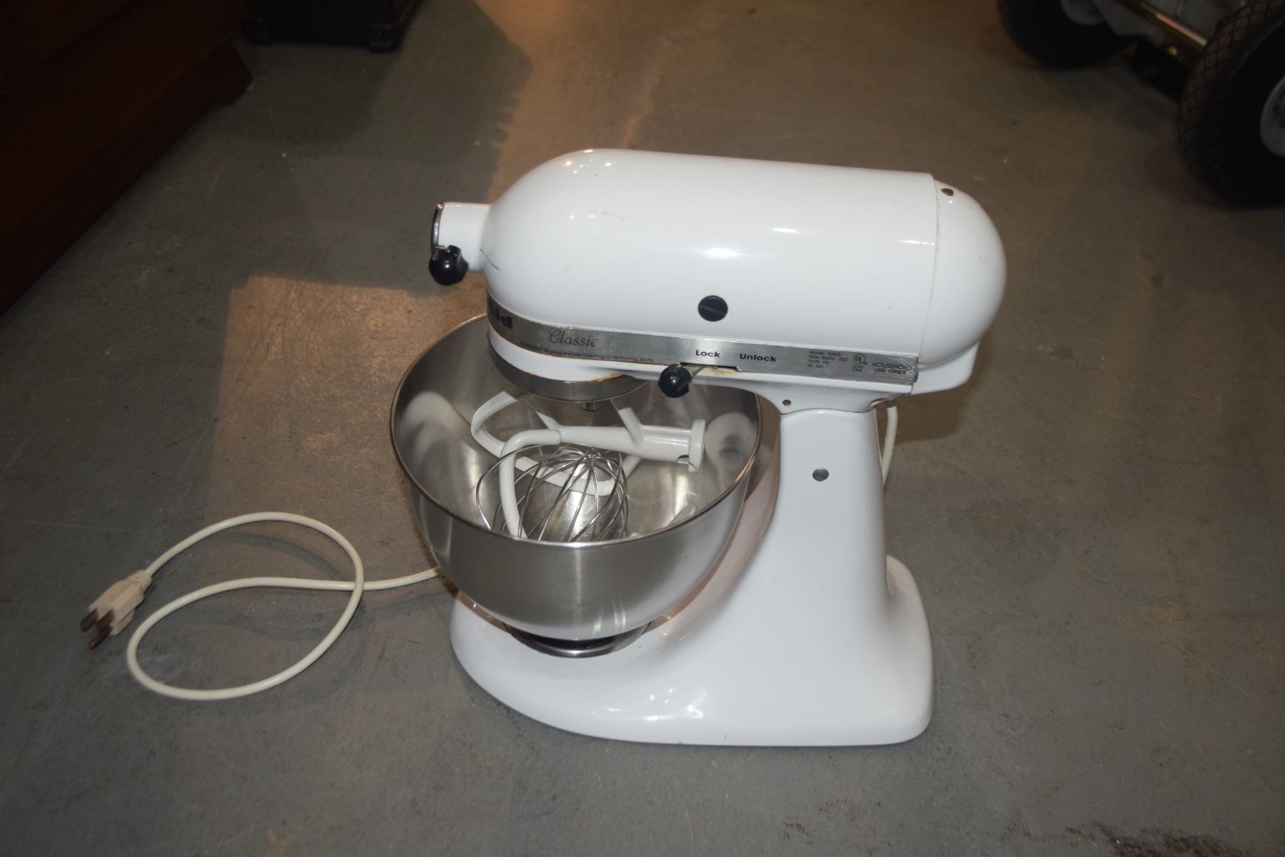 KITCHEN AID CLASSIC STAND MIXER, WHITE W/ATTACHMENTS