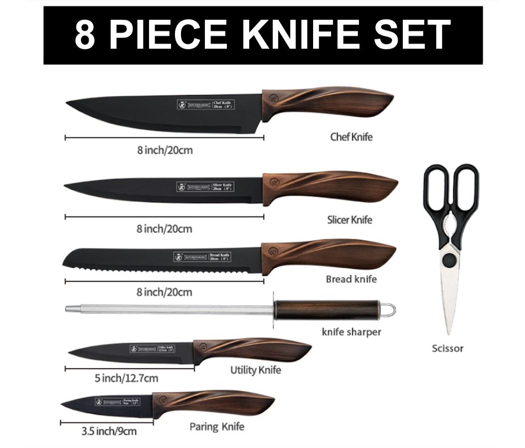 8" CHEF KNIFE - 8" BREAD KNIFE - 8" CARVING KNIFE - 5" UTILITY KNIFE - 3.5" PARING KNIFE - SHARPENER - SCISSORS **ALL ITEMS MUST BE REMOVED BY 5PM SATURDAY, APRIL 29TH 2023. ALL REMAINING ITEMS WILL BE SUBJECT TO A $6.00 PER DAY STORAGE CHARGE. ANY ITEMS REMAINING AFTER MONDAY, MAY 15TH, 2023 WILL BE CONSIDERED FORFEITED. NO REFUNDS WILL BE ISSUED FOR FORFEITED ITEMS. TO SCHEDULE A PICK UP APPOINTMENT CLICK HERE