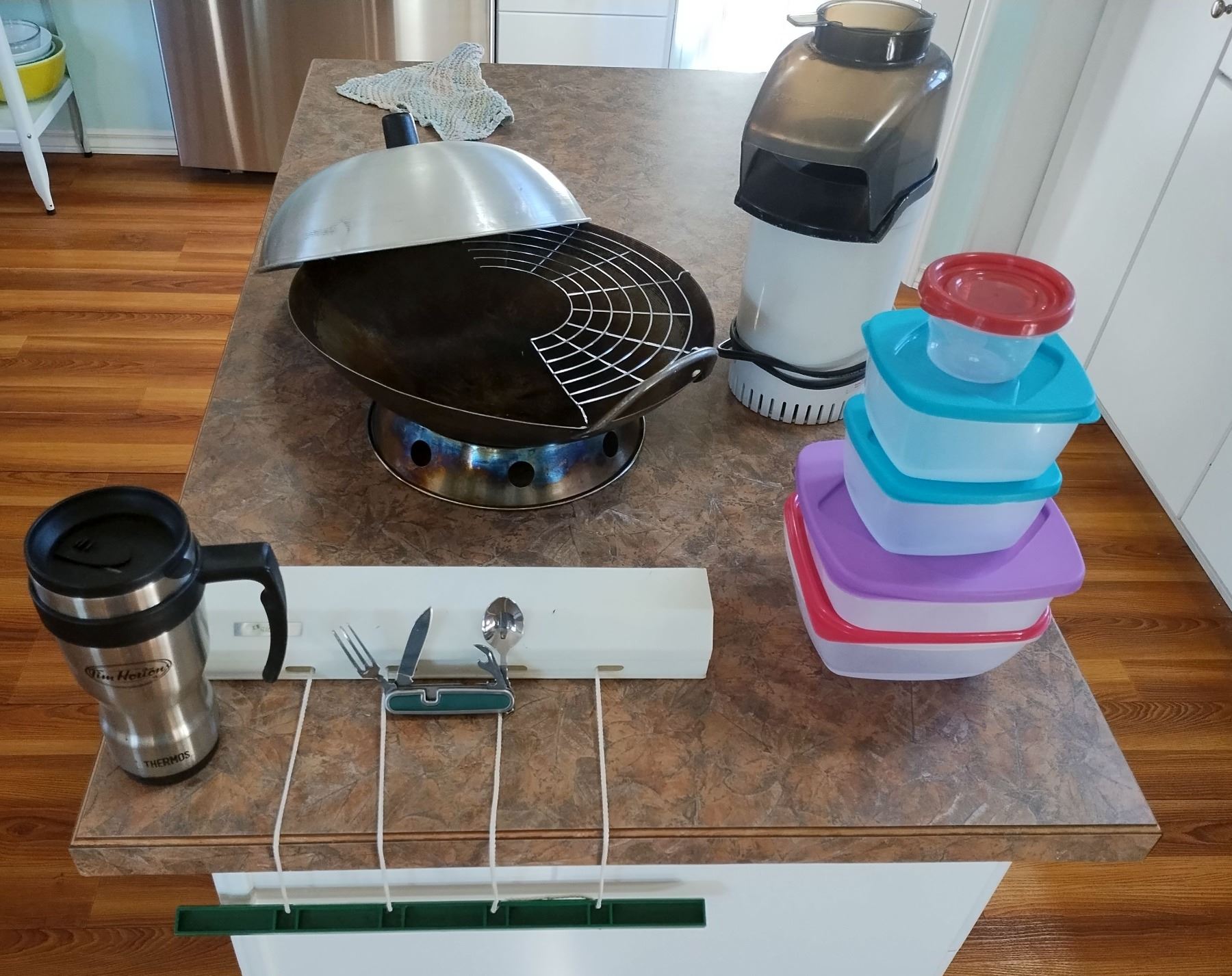 KITCHEN LOT -WOK, CORN POPPER, TIM HORTONS GO