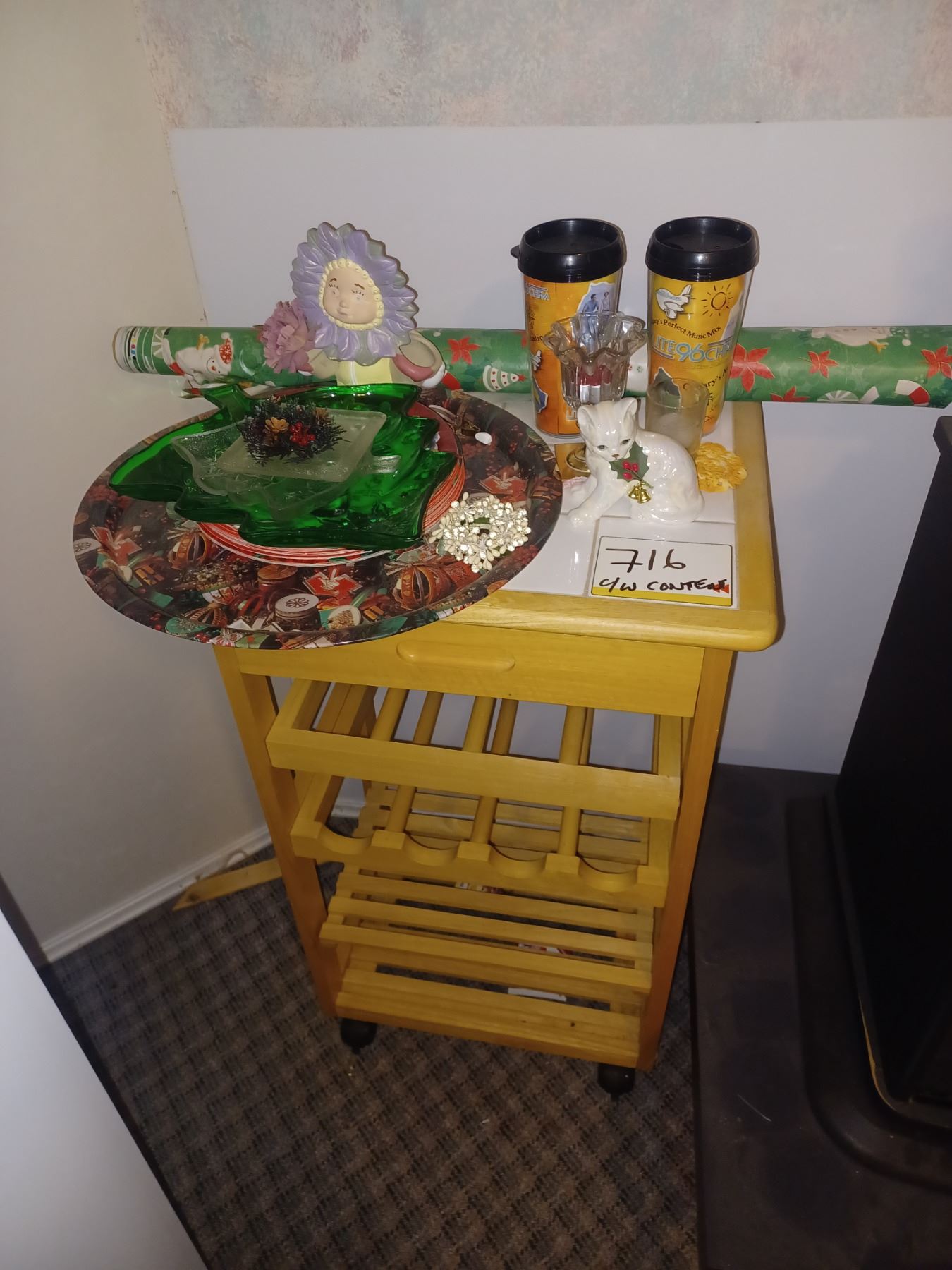 KITCHEN STAND WITH CERAMIC TOP AND WINE RACK C/W ALL CONTENTS INCL ON TOP