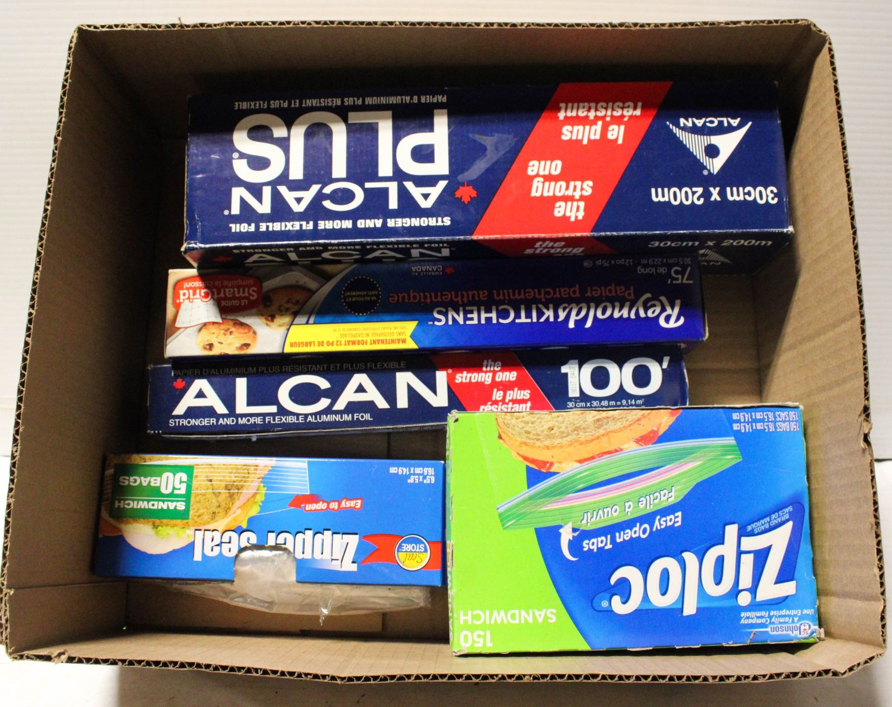 KITCHEN WRAP/BAGS/FOIL/MISC- BOX LOT ASST.