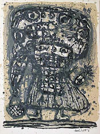 AKIRA KITO - ORIGINAL LITHOGRAPH - "ENFANT" - ON VELIN D' ARCHES WOVE PAPER - PRINTED IN 1964 BY THE LEGENDARY ATELIER FERNAND MOURLOT, MOURLOT FRERES, PARIS FRANCE - ISSUED IN A LIMITED EDITION OF 2000 - SIGNED IN THE PLATE (NOT BY HAND) - SHEET SIZE: 10" X 7 1/2" (255 X 185 MM) - PROFESSIONALLY FRAMED AND MATTED - THIS KITO ORIGINAL LITHOGRAPH IS FROM THE SCARCE AND LAVISHLY-PRODUCED LIMITED EDITION CATALOGUE, "PRINTS FROM THE MOURLOT PRESS". PUBLISHED IN 1964 BY MOURLOT ON THE OCCASION OF THEIR LANDMARK TRAVELING EXHIBITION, WHICH WAS SPONSORED BY THE FRENCH EMBASSY AND THE SMITHSONIAN - THE CATALOG WAS LIMITED TO 2000 COPIES ON VELIN DE ARCHES WOVE PAPER AND 200 COPIES ON VELIN DE RIVES PAPER WHICH WERE RESERVED FOR THE ARTISTS