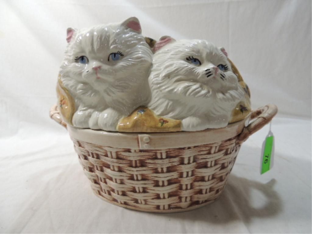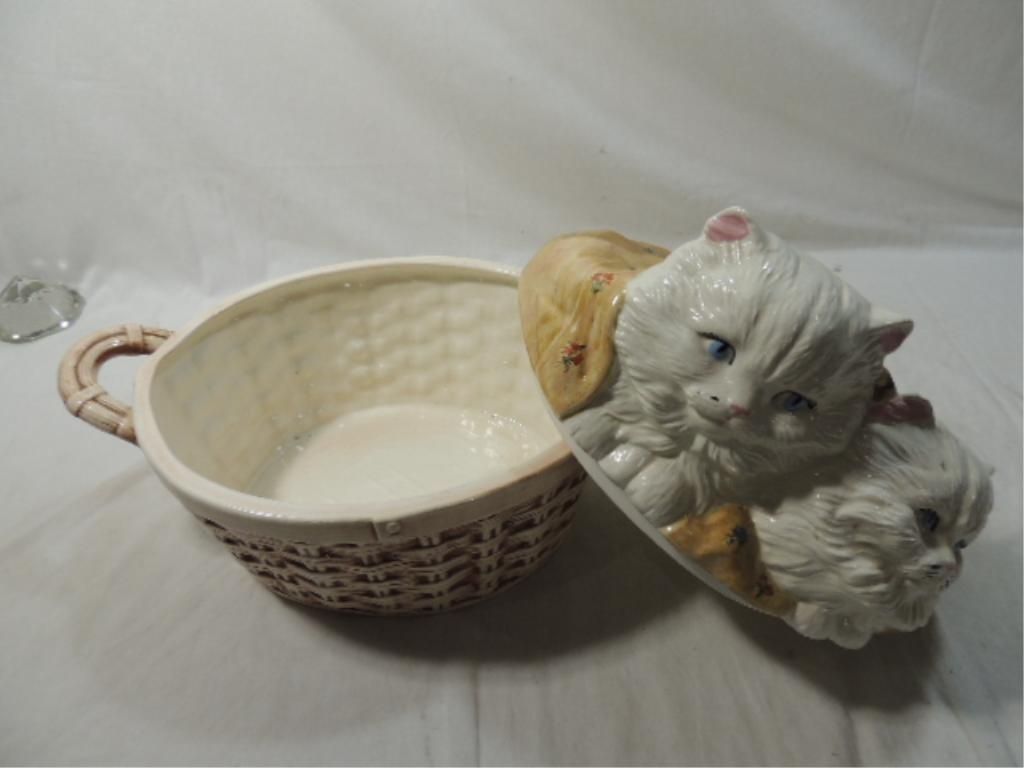 APPROX 10" TALL. CERAMIC LIDDED BOWL, MOST LIKELY VERY USEFUL AS A COOKIE JAR. SEE PHOTOS FOR MORE DETAILS.